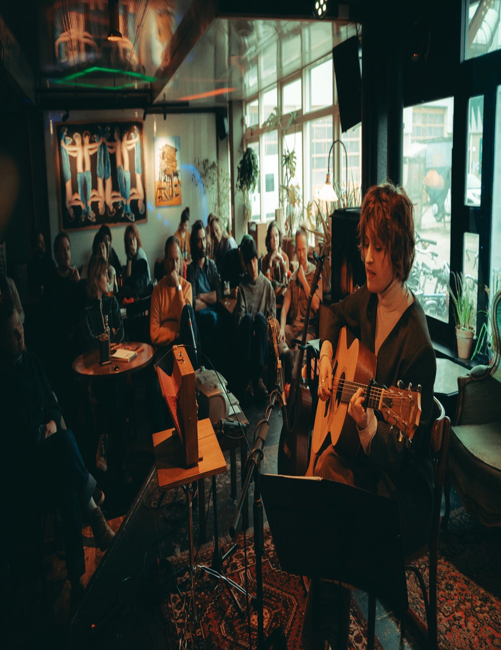 She grew up in a small coastal village in Zeeland, the Netherlands. From a young age, she developed a passion for storytelling and loved listening to anyone with a good tale to tell. Her early musical influences include artists such as Leonard Cohen, The Waterboys, and many notable Dutch musicians, such as Maarten van Roozendaal. At the age of twelve, she discovered Mahogany and Cardinal Sessions on YouTube. This platform introduced her to contemporary folk influences like Rachel Sermanni, Will Varley, and Johnny Flynn. After school, she would spend hours scrolling through hundreds of videos, watching artists showcase their craft. By discovering some of her all-time favourite artists through these platforms and reading the works of writers like Allen Ginsberg and Rainer Maria Rilke, she developed a deep appreciation for acoustic music, intimate storytelling and poetic lyricism. This led her to pick up the guitar and begin writing her own songs, blending music and poetry to express her thoughts and emotions.